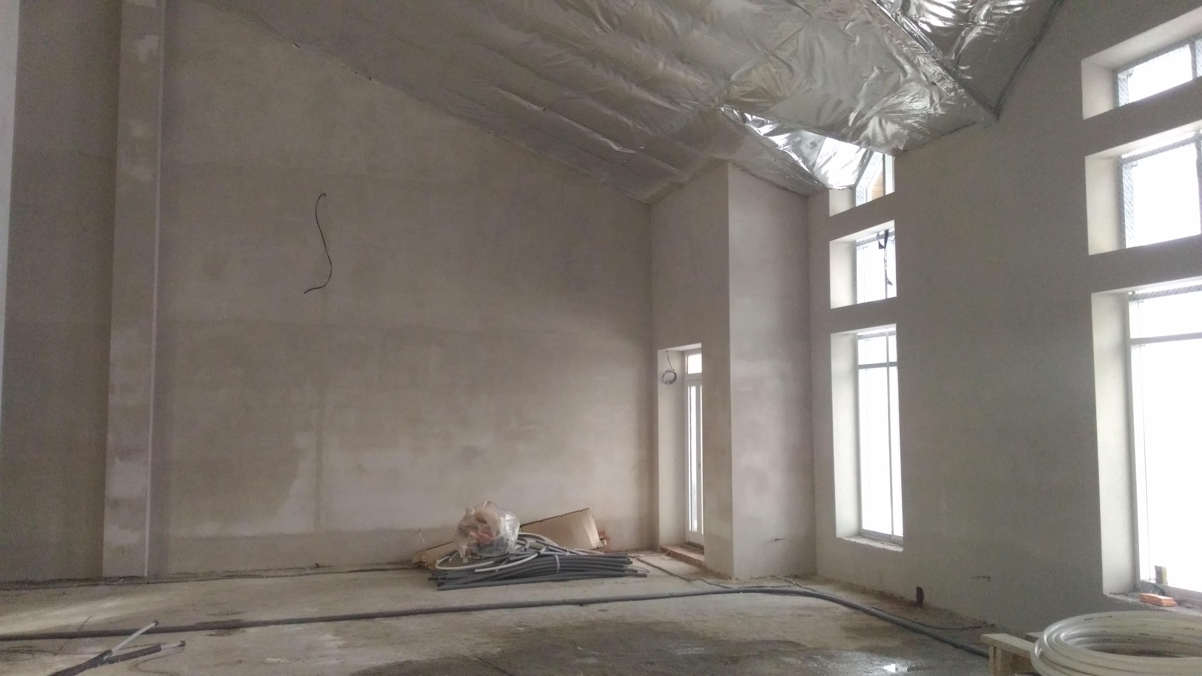 Производим основные штукатурно-механизированные работы. Выравниваем, и производим затирку.
